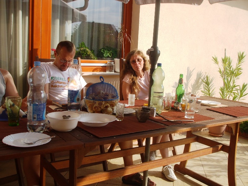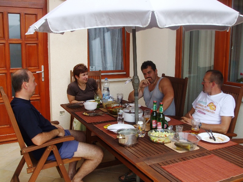 Idén a csoporttalálkozót Szabóné Mészáros Mártiéknál Ikrényben rendeztük. Márti és Csaba nagyon gondos vendéglátónk volt, minden jóval vártak bennünket. Jókat beszélgettünk és jókat ettünk. Reméljük jövőre a végzésünk 20. évfordulóján többen leszünk!
