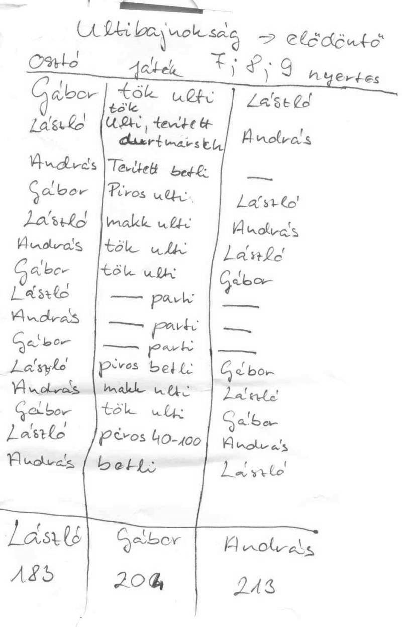 Bódi László. A három kört alkottunk: Greksza-Szinger-Mayer, Hódi-Hóbor-Bódi, Szaszák-Árpádfalvi-Gera. 200 forinttal indultunk és