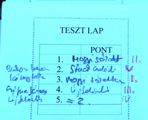A 30. csatára készültünk. Az alkalomhoz illően felöltözött versenyzők várták a nagy csatát. A kaja előkészítésével indítottunk, illetve a teszttel kezdtük az estét. A teszt alanya minden ffi ember rágcsája a szotyi. Az 5 versenyző végső sorrendjét láthatjátok az alábbi fotón. Természetesen csak magas iskolákat végzett szotyitesztelők vehettek részt az eseményen.