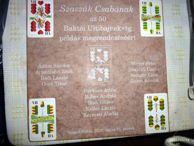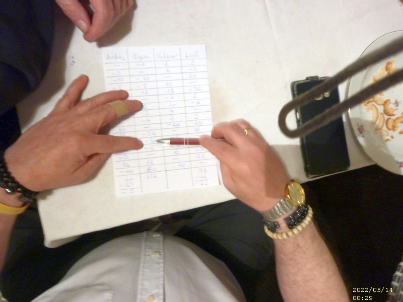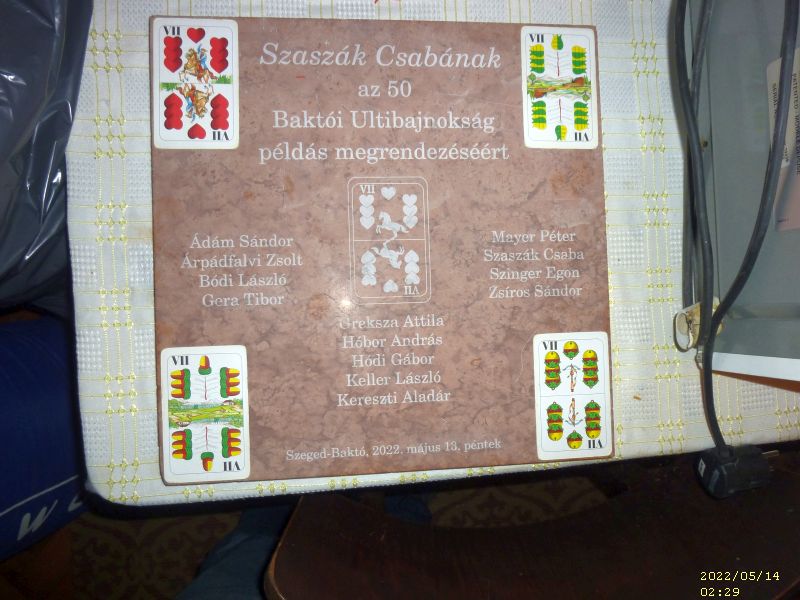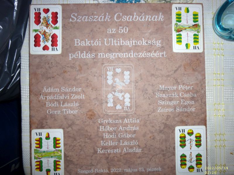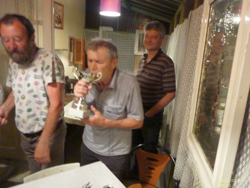 Amíg a B döntősök kedélyesen beszélgettek és játszogattak, addig az A döntő játékosai egymást nem kímélve pusztították a köröket. Írtózatos kemény és magasszínvonalú játék végén Egon testvérünk utolsó osztásos nagymondása sem volt elég ahhoz, hogy BÓDI LACIT letaszítsa a trónról.